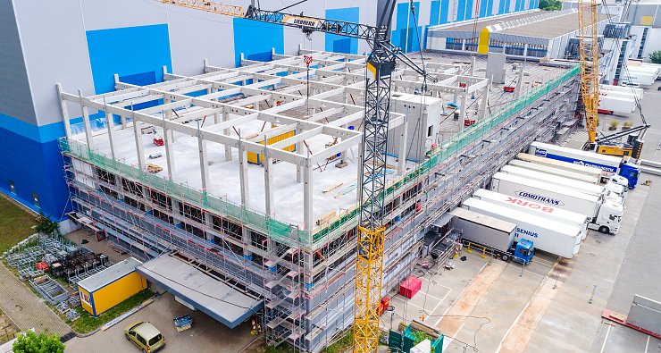 Schlüsselfertige Erweiterung und Aufstockung eines Logistikzentrums sowie Parkplatzerweiterung,