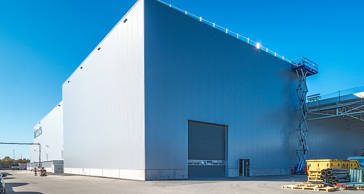 Schlüsselfertige Erweiterung einer Produktionshalle mit Außenanlagen, einschließlich Ausführungsplanung